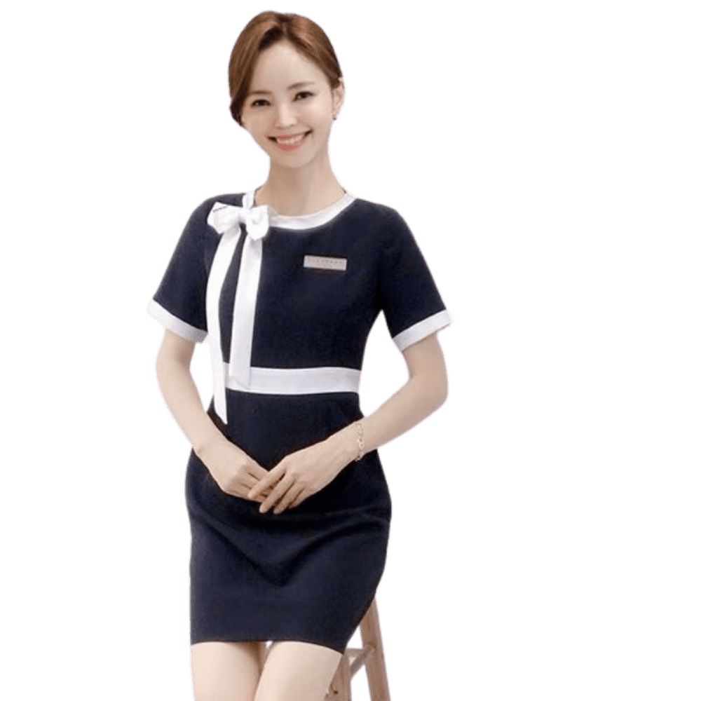 - Đồng phục lễ tân spa: lễ tân spa là người có vai trò tiếp xúc với khách hàng đầu tiên từ khi đặt lịch hẹn cho đến tiếp đón khách hàng tại spa. Đồng phục lễ tân được chia làm 2 loại: đồng phục kiểu dáng váy liền thân và đồng phục áo lỡ kết hợp với chân váy.
