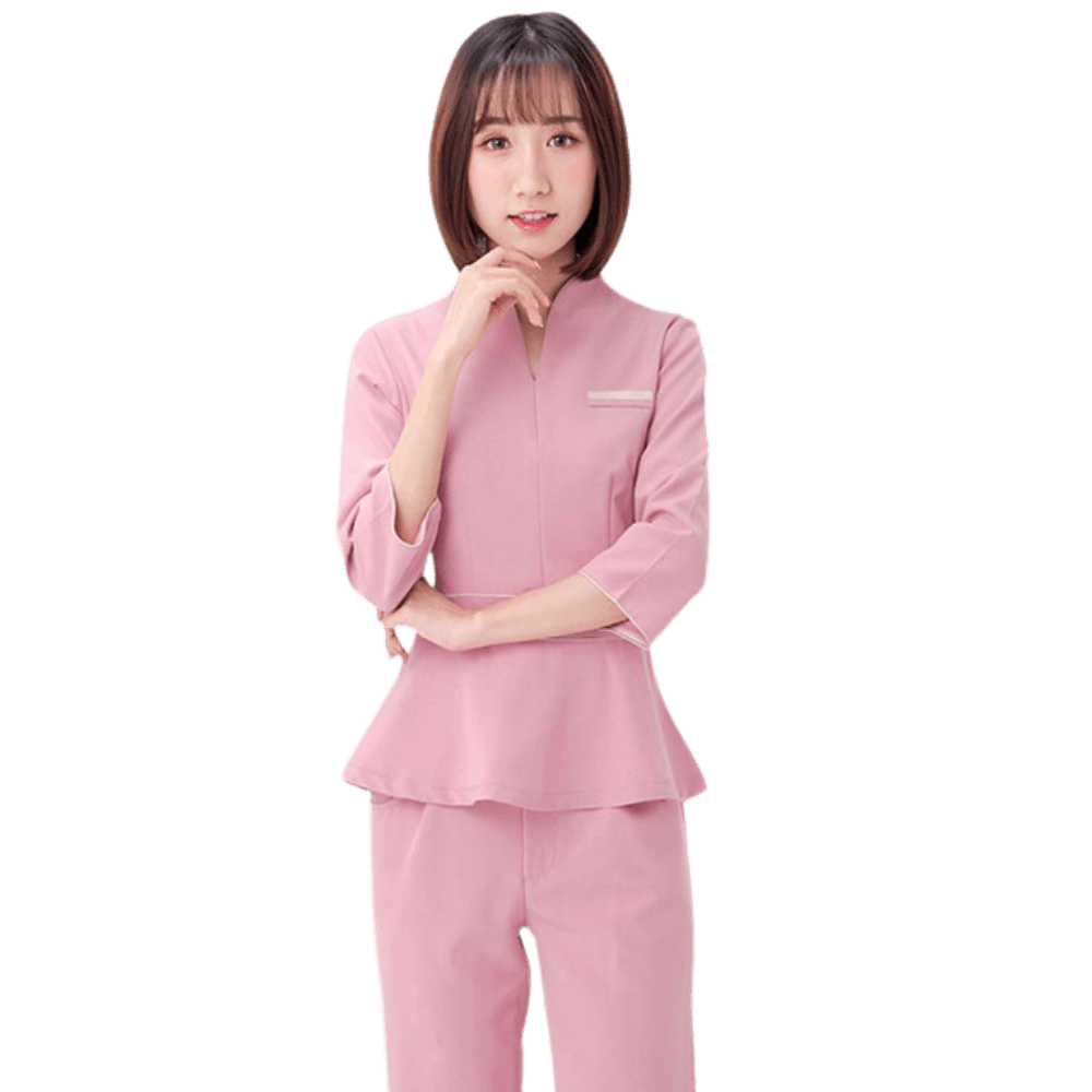 Mẫu đồng phục spa thiết kế chỉnh chu, lịch sự, hợp thời trang, rộng rãi, thoáng mát bởi tính chất di chuyển linh hoạt của nhân viên spa.